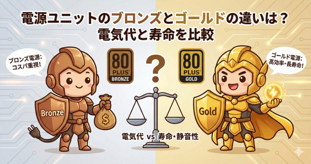 電源ユニットのブロンズとゴールドの違いは?電気代と寿命を比較