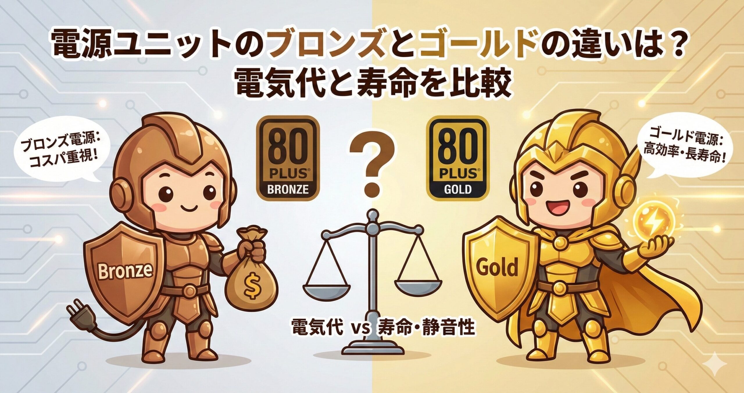 この記事では、PCオタクである私が、カタログスペックだけでは見えてこない「ブロンズとゴールドのリアルな違い」を徹底的に深掘りします。これを読めば、あなたのPCに最適な電源がどちらなのか、自信を持って選べるようになるはずです。