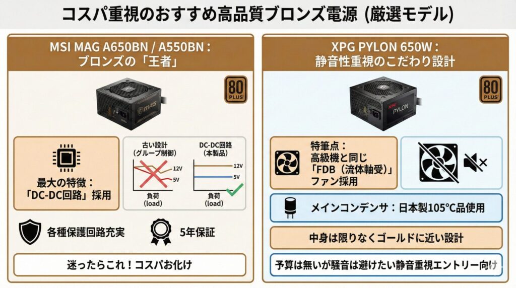 「ブロンズでいいけど、すぐに壊れるような安物は嫌だ」という方のために、私が自信を持って推せる「高品質ブロンズ電源」を厳選しました。