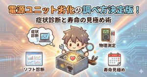 もしここまでやっても原因が特定できない、あるいはテスターを使う自信がない場合は、Amazonなどで新しい電源ユニットを購入(あるいは友人に借りるなど)して交換してみる「スワップテスト」が、最終的かつ最も確実な診断方法となります。